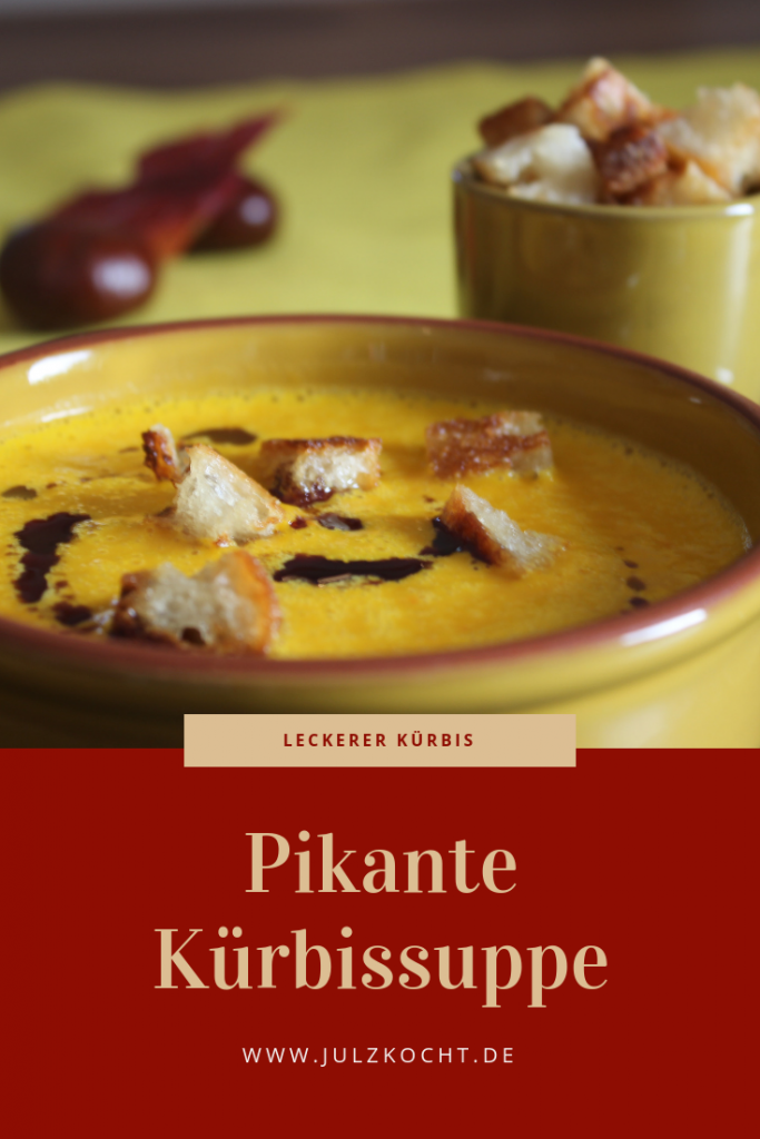 Ich liebe den Herbst. Ist es nicht schön, wenn sich die Bäume bunt färben und man bei bestem Wetter die Farbenpracht der Natur genießen kann? Aber das schönste an dieser Jahreszeit ist doch die Kürbissaison. Es gibt so viele tolle Sachen die man mit dem Kürbis – welchen es ja in mindestens genau so vielen Farben wie das Herbstlaub gibt – machen kann. Da wären Kürbispommes, Kürbispüree, Pasta mit Kürbis, Kekse, Bratlinge oder einfach eine klassische Kürbissuppe. Mein Rezept für Kürbissuppe wird mit Ingwer und Chili gekocht und ist somit etwas pikanter. Gekocht habe ich diese Suppe für die kalten Herbsttage – welche es bisher ja nicht gibt. Aber auch an warmen Tagen schmeckt diese Suppe.