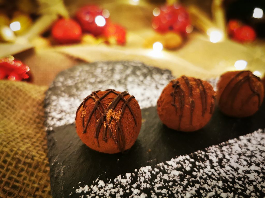 - Die getrockneten Aprikosen in feine Würfel schneiden und mit Marzipan, Puderzucker und Cointreau vermischen. Anschließend 25 gleichgroße Kugeln formen.