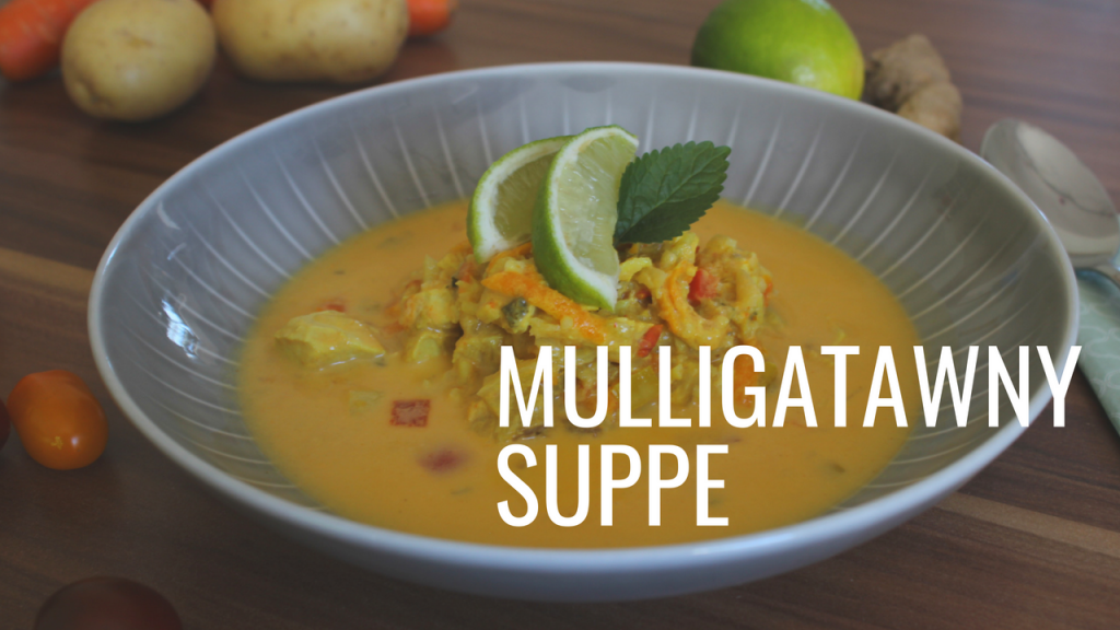 Von dieser leckeren Suppe habt Ihr sicherlich alle schon einmal gehört. Jedes Jahr am 31.Dezember serviert James diese Mulligatawny-Suppe an Miss Sophie. Aromatisch scheint diese Suppe aus Indien zu kommen. Sie ist aber ein Klassiker der britischen Küche. Dennoch kommt das Vorbild – eine Sauce die mit Reis gegessen wird – aus Indien. Auch wenn das Wetter momentan nicht wirklich zum Essen von Suppe einlädt, hatte ich Lust eine Suppe zu kochen. Durch Mango, Ananas und Kokosmilch schmeckt diese Suppe schön erfrischend.